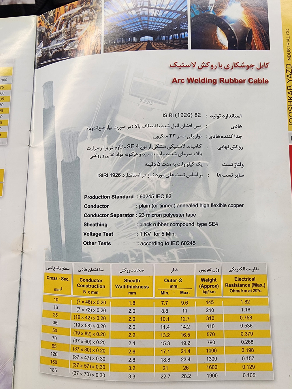 مشاهده همهانواع کابل جوش در سایزهای استاندارد با روکش نسوز ( خال جوش )