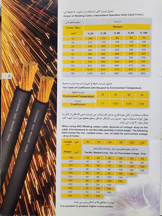 کابل جوشکاری لاستیک نسوز جوشکاب یزد ۲۵×۱ ( نمره 12 )