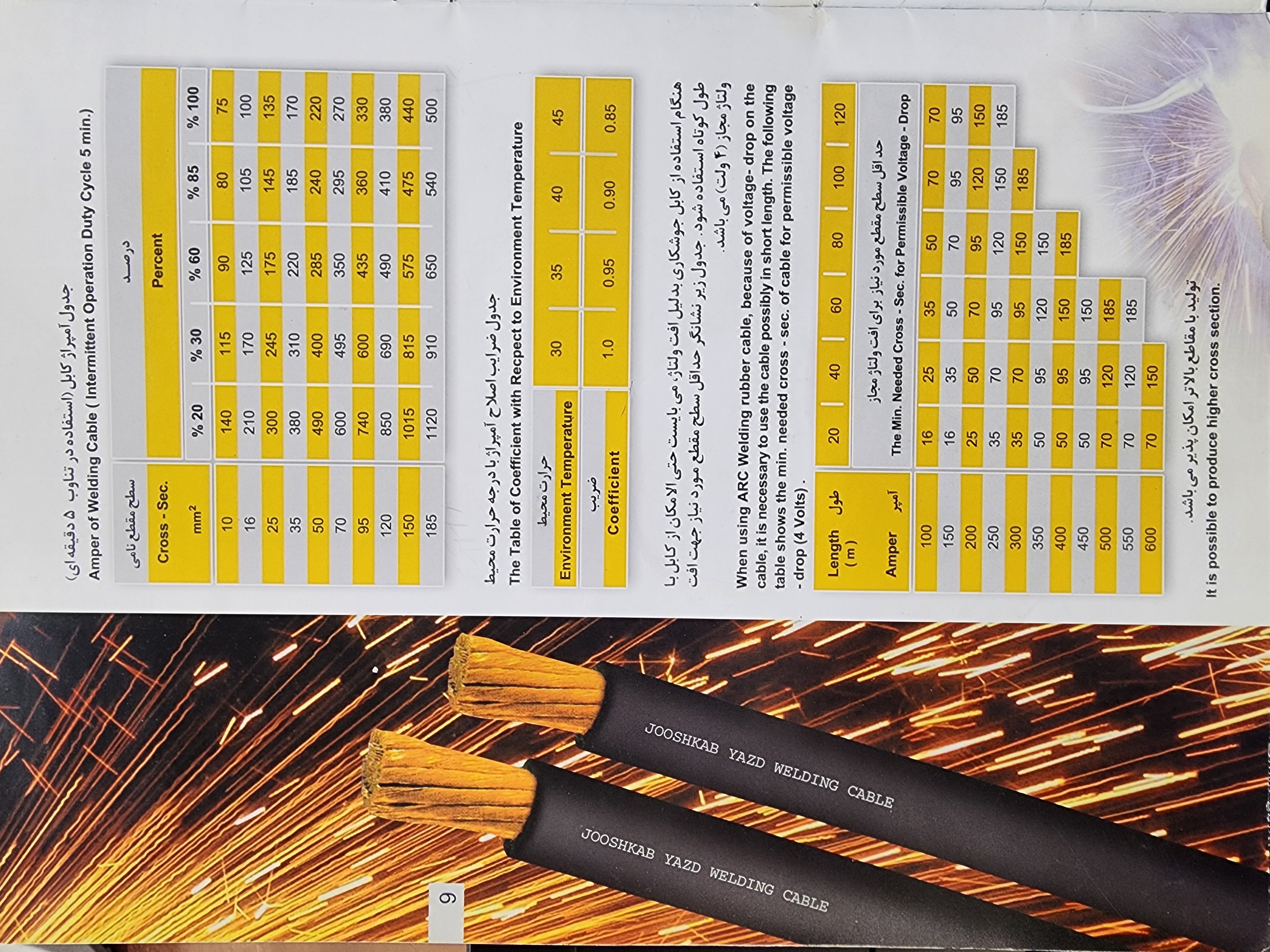 کابل جوشکاری لاستیک نسوز جوشکاب یزد ۷۰×۱ ( نمره 18 )