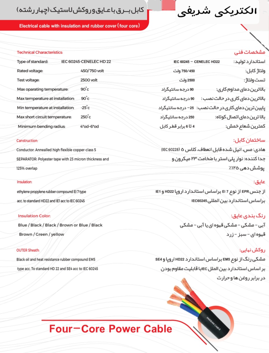 ولتاژ کابل : 450/750 ولت