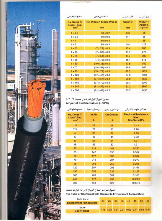 عایق روکش کابل لاستیک نرم از جنس EPR از نوع EI7 بر اساس استاندارد اروپا HD22 و IE1 ; که قابلیت ضد سایش ضد اسید ضد نفت و گاز ضد سرما تا منفی 30 درجه و مثبت 90 درجه سانتیگراد را دارا میباشد
